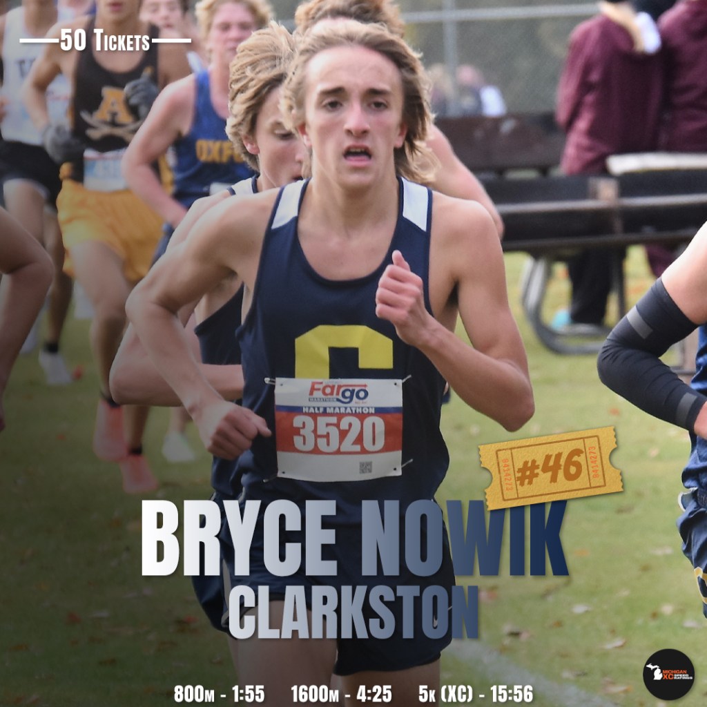 You just marvel at it when you see it. Bryce’s first year at the high school level was spent hovering around 19:00 and just two years later, he found his way under 16:00. There’s a reason Clarkston is almost always near the top of the Oakland County scene, Bryce is just one of many who have developed from humble beginnings. Other than his 15:56 at the Hansons Invite, all of the rest of his season contained efforts in the 16’s, on tough courses such as Hess Hathaway and Possum Hollow too. Bryce’s evolution didn’t just stop in the fall, he took it to another stratosphere in track, first breaking 2:00 in the 800m at Farmington, then subtracting a whole 4 seconds in the Oakland County final. After a summer of hard work, how will his story continue to unfold?