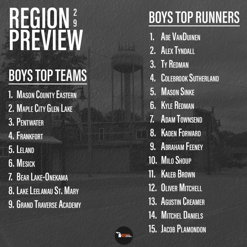 My boys projections were consistent all year for the top two, Eastern and Frankfort. But for the third spot, it was Leland. Then Buckley. Then Pentwater. And hey, I was right for once! But to be right, a kid such as Mitch Daniels stepped up in a big way. Leland’s girls pulled off a great late season surge, coming through here, then finishing the highest of any girls team from the Division 4 M-22 area.