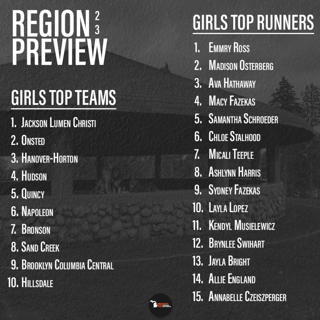 Jackson Lumen Christi (Top 6), Onsted (21st), Hanover-Horton (25th)