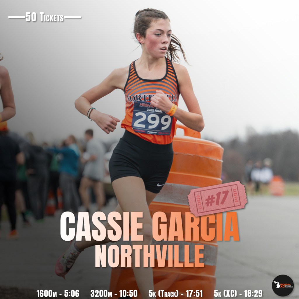 | 9 | Cassie Garcia | 18:52.3 | Northville | 139.6 | Division 1 State | 6-Nov |