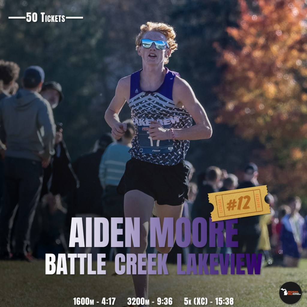 | 10 | Aiden Moore | 16:52.4 | Battle Creek Lakeview | 180.5 | Division 1 State | 6-Nov |