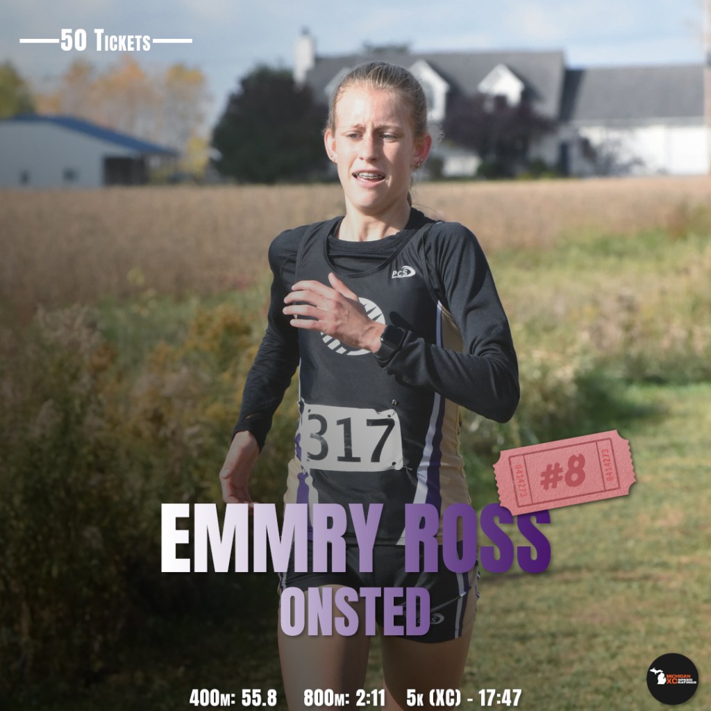 | 10 | Emmry Ross | 18:21.0 | Onsted | 154.0 | Division 3 State | 5-Nov |