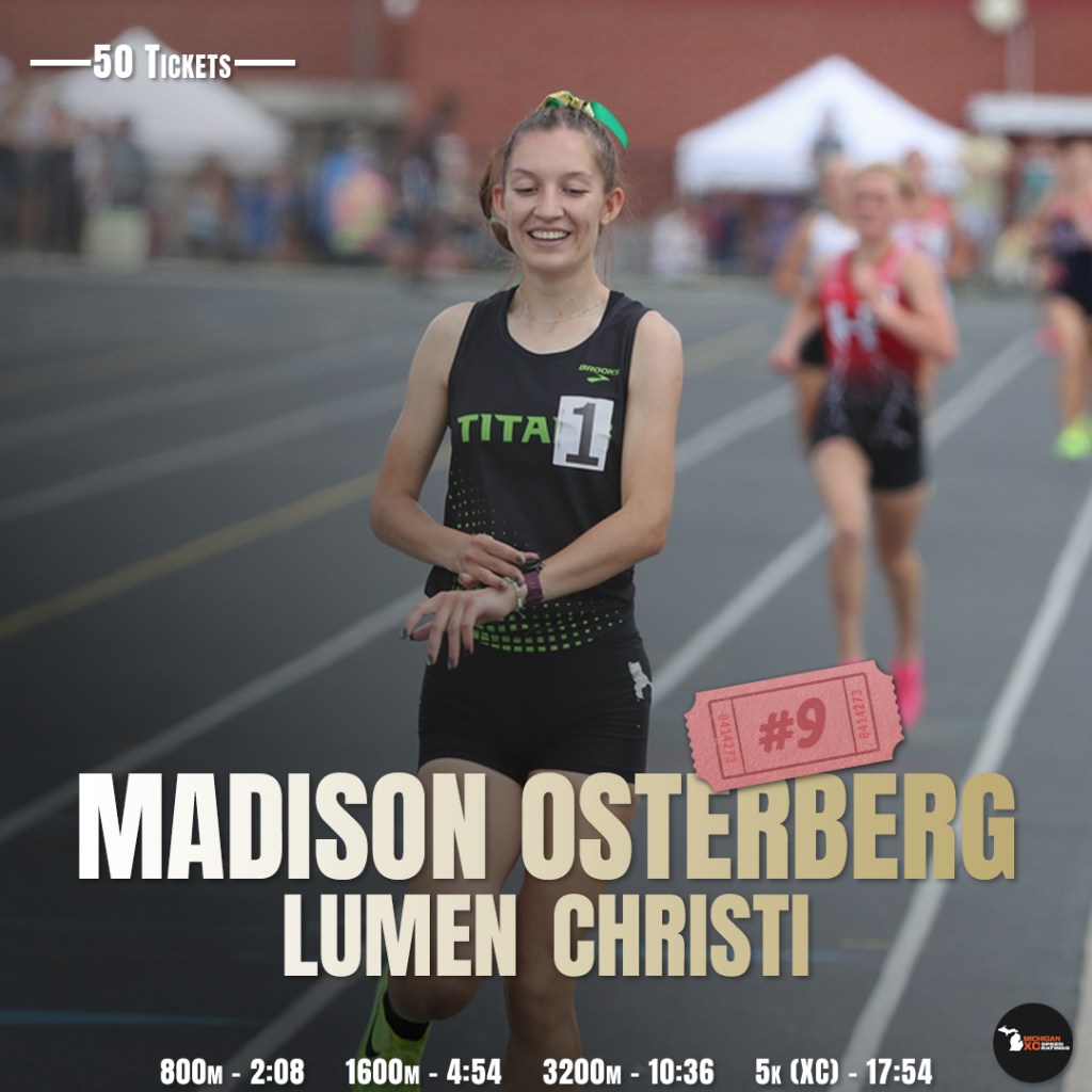 | 10 | Madison Osterberg | 19:29.9 | Jackson Lumen Christi | 154.0 | Michigan Catholic |