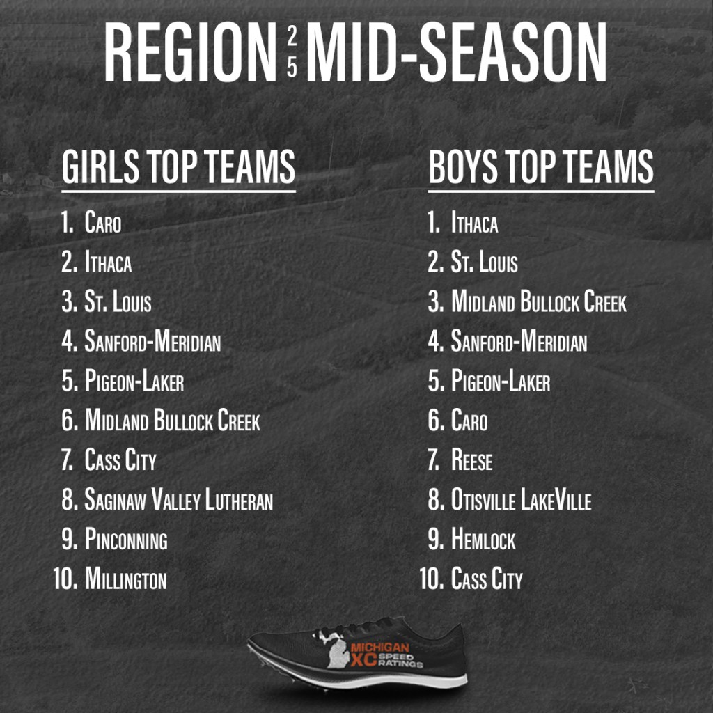 Given this juncture, time for another look at the regional projections. These follow many of the same rules as the division rankings. Using an individual’s races from here, a total rating is created by taking the top 75% of a runner’s races and weighing them toward more recent meets. Those ratings are then ranked for each region/division, spitting out a score that is used for the rankings. One added factor this week – filtering out athletes that haven’t competed over the past month, which I sadly have to assume are injured or no longer competing.