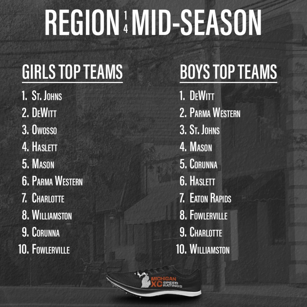 These might be much different than the athletic.net hypothetical meet. Anet uses the best performance from the season. I take more races into account, as I feel the entire resume speaks a greater volume about someone. Anet uses jamborees and duals, for which I don’t have time to calculate. Anet doesn’t account for course differences. If you take the 160 boys that ran at both Holly and Jackson, on average the Jackson times were 30 seconds faster. We have great coaches in this state that promote week-to-week improvement, but clearly there are differences in courses (and there are short/questionable ones too)! I’m not saying one is better than the other, just that I prefer my own and my bet is that they’ll be more accurate when we do this again next month.
