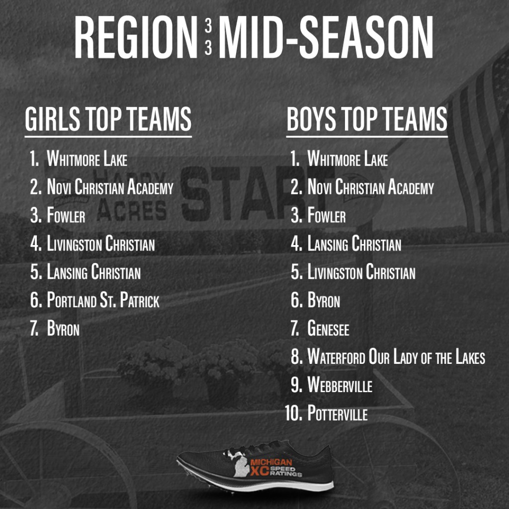 Given this juncture, time for another look at the regional projections. These follow many of the same rules as the division rankings. Using an individual’s races from here, a total rating is created by taking the top 75% of a runner’s races and weighing them toward more recent meets. Those ratings are then ranked for each region/division, spitting out a score that is used for the rankings. One added factor this week – filtering out athletes that haven’t competed over the past month, which I sadly have to assume are injured or no longer competing.