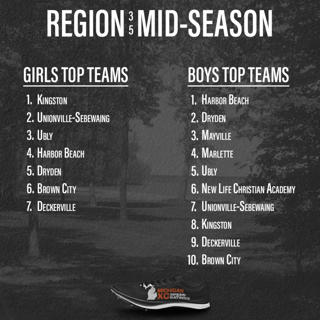 Given this juncture, time for another look at the regional projections. These follow many of the same rules as the division rankings. Using an individual’s races from here, a total rating is created by taking the top 75% of a runner’s races and weighing them toward more recent meets. Those ratings are then ranked for each region/division, spitting out a score that is used for the rankings. One added factor this week – filtering out athletes that haven’t competed over the past month, which I sadly have to assume are injured or no longer competing.