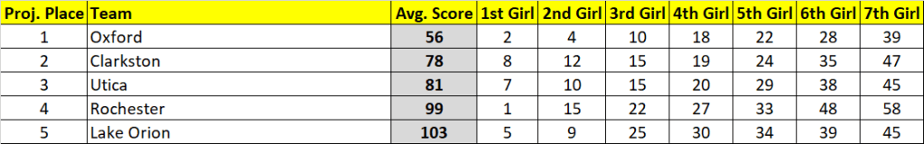 The simulations give the possibilities of those scenarios and all the various scoring scripts. A sixth girl that can pop off on any certain day, a reliable boy who always runs 17-flat, you name it. Hopefully, they better elucidate our contenders, qualifiers, and how these races play out over the weekend.