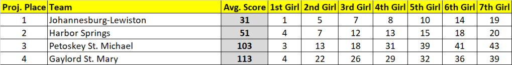 The simulations give the possibilities of those scenarios and all the various scoring scripts. A sixth girl that can pop off on any certain day, a reliable boy who always runs 17-flat, you name it. Hopefully, they better elucidate our contenders, qualifiers, and how these races play out over the weekend.