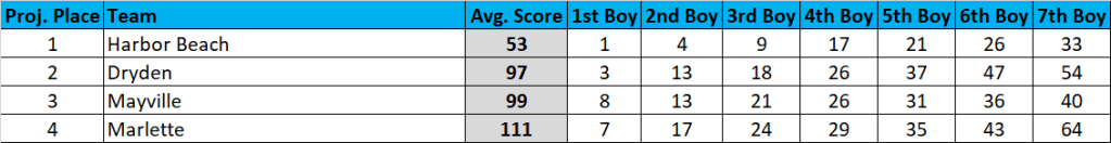 Tons of USA, Kingston, and Ubly girls occupying the 11th-20th spots moves the expected cutoff to 19th.