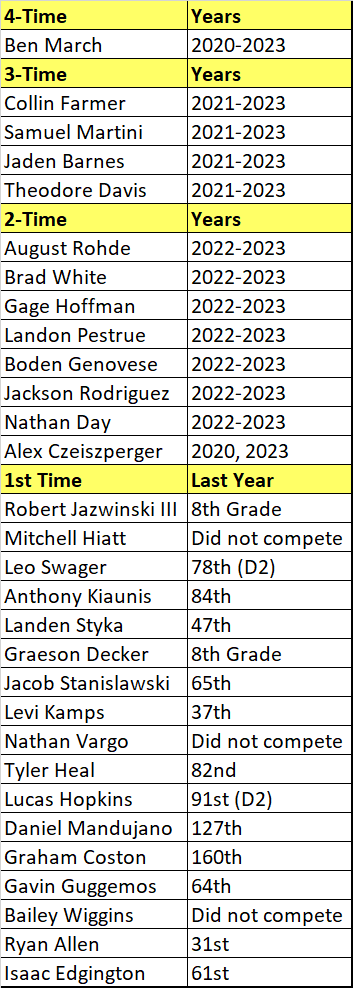 | 10 | Owen Beindit | 17:56.1 | Algonac | 154.0 |