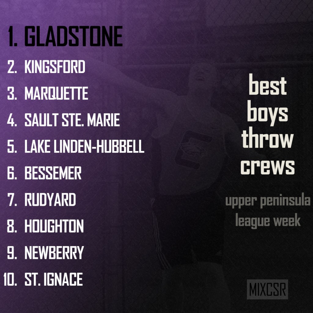 | 10 | Braden Ditmeyer | 41′ 5.75″ | Sault Ste. Marie | 354 | Shot Put |