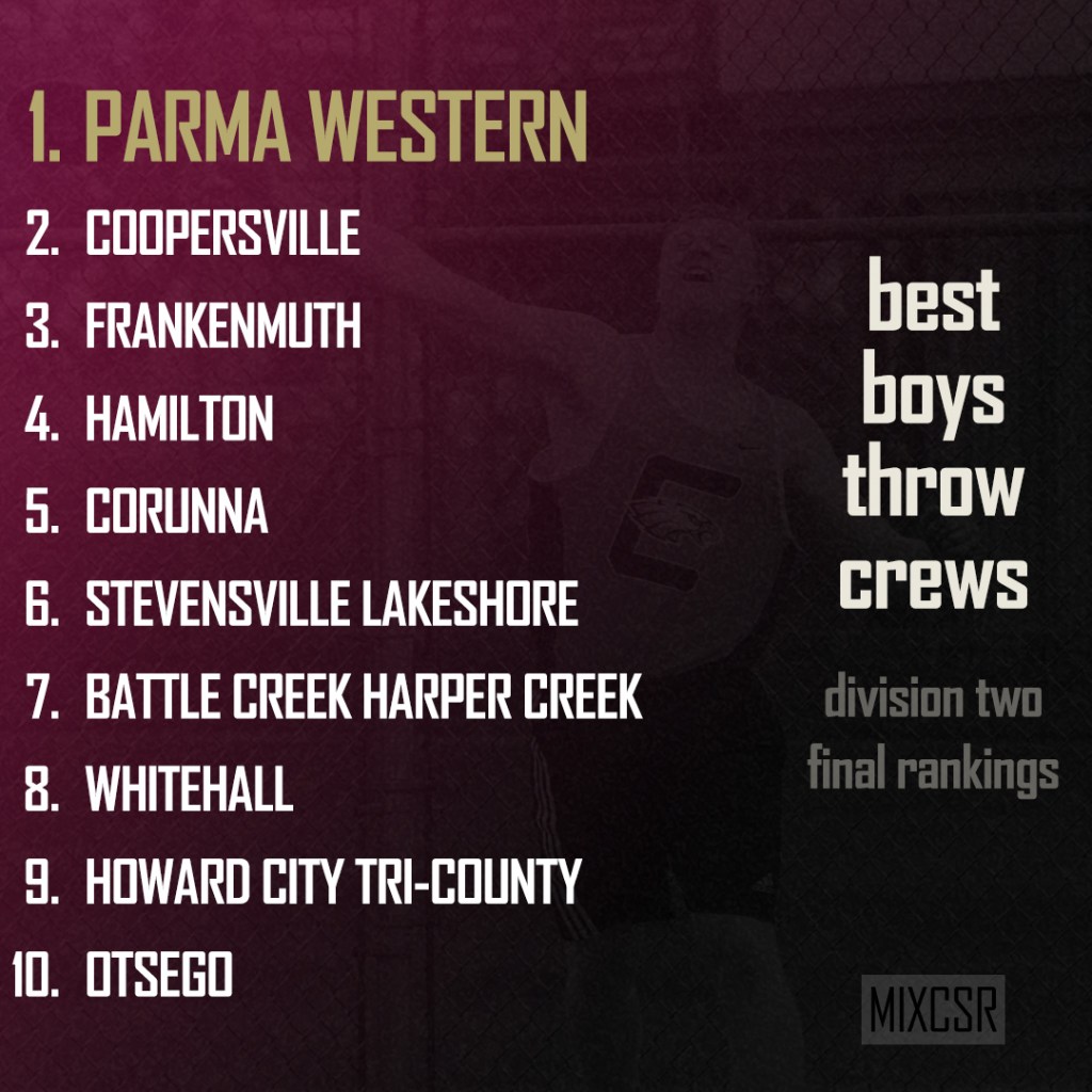 | 11 | Brennan Faber | Parma Western | 59′ 10.5″ | 500 | Shot Put |