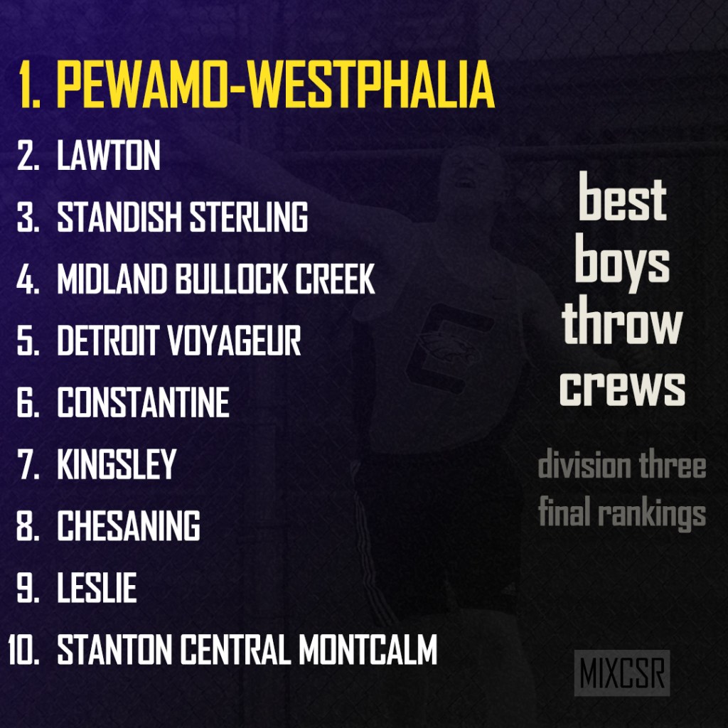 | 12 | Nathan Cody | Walled Lake Central | 55′ 3.5″ | 464 | Shot Put |