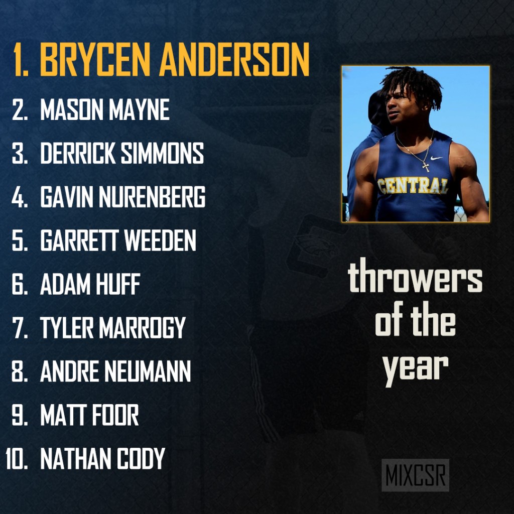 | 12 | Brycen Anderson | Walled Lake Central | 56′ 9″ | 476 | Shot Put |
