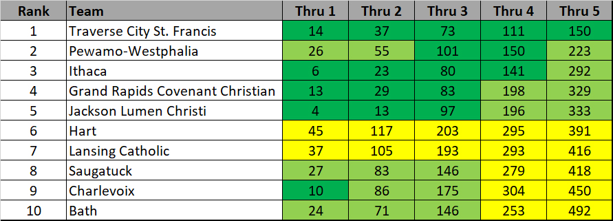 | 1 | Traverse City St. Francis | 1st | 3 of 5 | 5 of 7 |