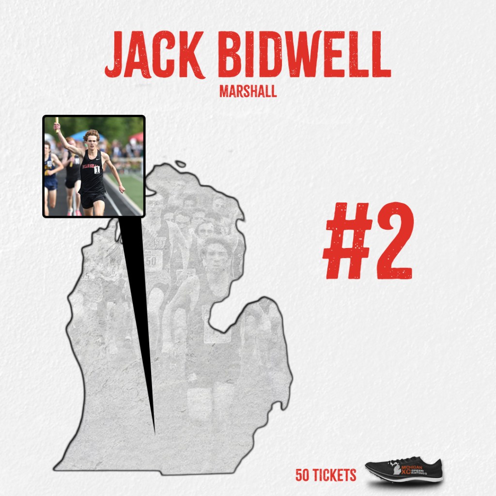 A sophomore year saw more climbs forward. This past year is when Bidwell truly put it into overdrive. According to this very informative Battle Creek Enquirer article, Redhawk cross records were shattered seven times this fall. The track record board is also full of his surname, as he holds records from the 800m to the 3200m. Time-wise, he does his thing, though his true talent comes when challenged. We saw this in the D2 State 4×8, where Jack received the rock three seconds back of first, trailing Forest Hills Eastern, DeWitt, and Frankenmuth – all prominent and speedy D2 programs. 110.8 seconds later, he’d cross the line in first, winning by more than 2 seconds. When pressed, we get a glimpse of the places he can go.