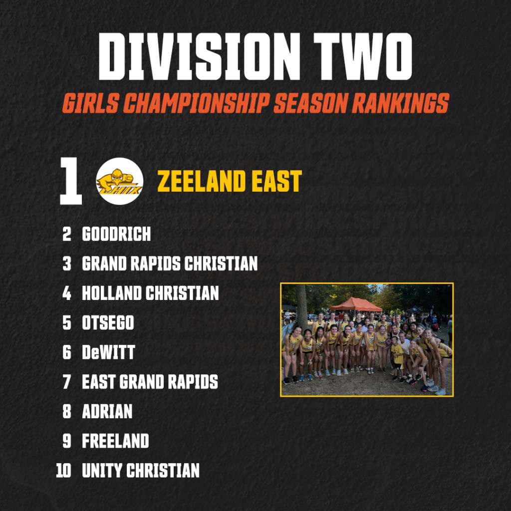 Repeats on Mount Bulldog must’ve gained an advantage for Otsego, who defended their home course beautifully. PR/SR’s from their top six girls, all scorers under 20, a showing that they’re in contention for a podium spot. The Bulldogs beat #1 Zeeland East, who had a solid race. Otsego was just that good. No chance in the actual rankings, but check the point totals, they’re on the path forward.
