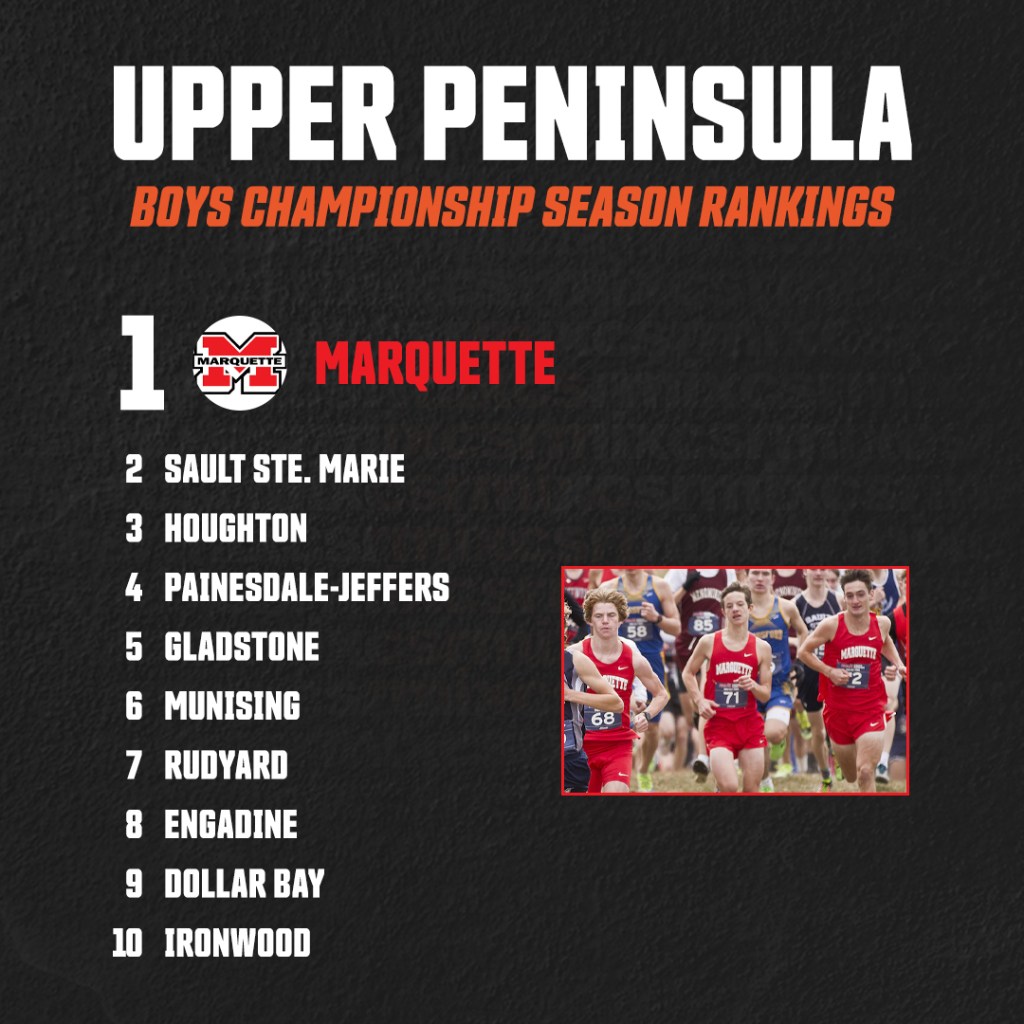 The big one seems to be the Houghton Invite, which will contain Houghton, Hancock, and Negaunee. Hancock and Negaunee seem to be running similarly, Hancock coming ahead at Mid-Peninsula Conference, Negaunee at Tracy Strom. The Bulldogs are appearing to be a shoe-in for the D2 crown, Negaunee is an underdog for a top-3 spot in D1, but still in contention.
