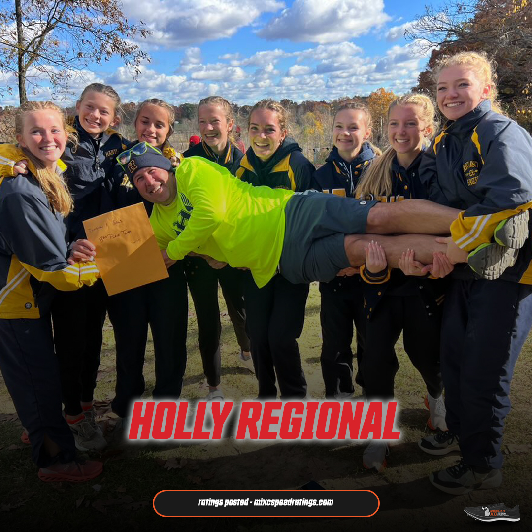 Delaney Mays, Pinckney – the Pirates were projected at 53%, a favorite to make it, but with the competitive depth in Region 16, ranked 4th. She’s improved so much year to year, a two minute leap from 9th to 10th grade, a minute in the past year. She’s been on a new level in championship season, breaking 22 each time out. Her contributions were needed here to help her Pirates move on.