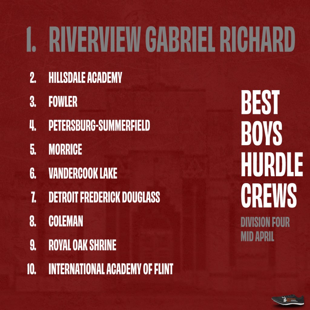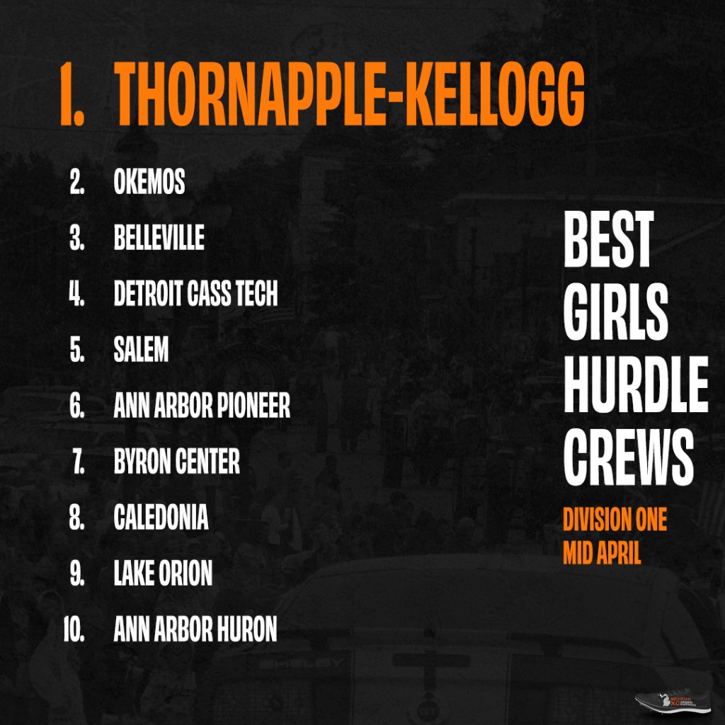 - instead of using a team’s top-four athletes to generate their total for an event, I’m using their top-three. Belleville’s hurdlers are the main reason for this, there’s no way they shouldn’t have been the top D1 squad last year. I feel this will better portray a team’s top athletes.