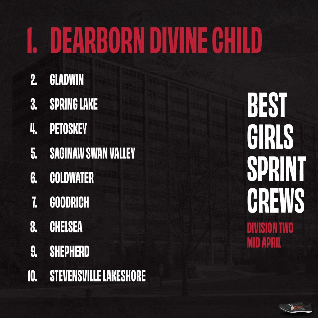 instead of using a team’s top-four athletes to generate their total for an event, I’m using their top-three. Belleville’s hurdlers are the main reason for this, there’s no way they shouldn’t have been the top D1 squad last year. I feel this will better portray a team’s top athletes.