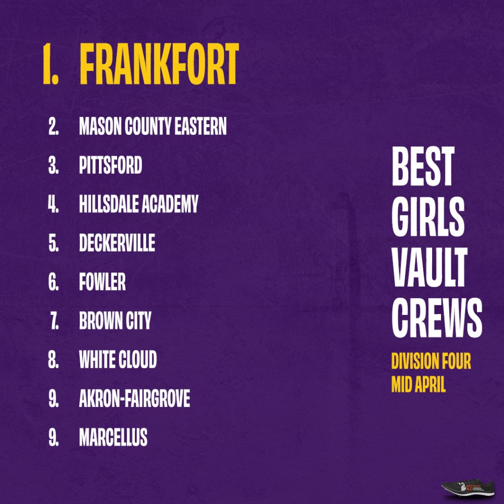 instead of using a team’s top-four athletes to generate their total for an event, I’m using their top-three. Belleville’s hurdlers are the main reason for this, there’s no way they shouldn’t have been the top D1 squad last year. I feel this will better portray a team’s top athletes.