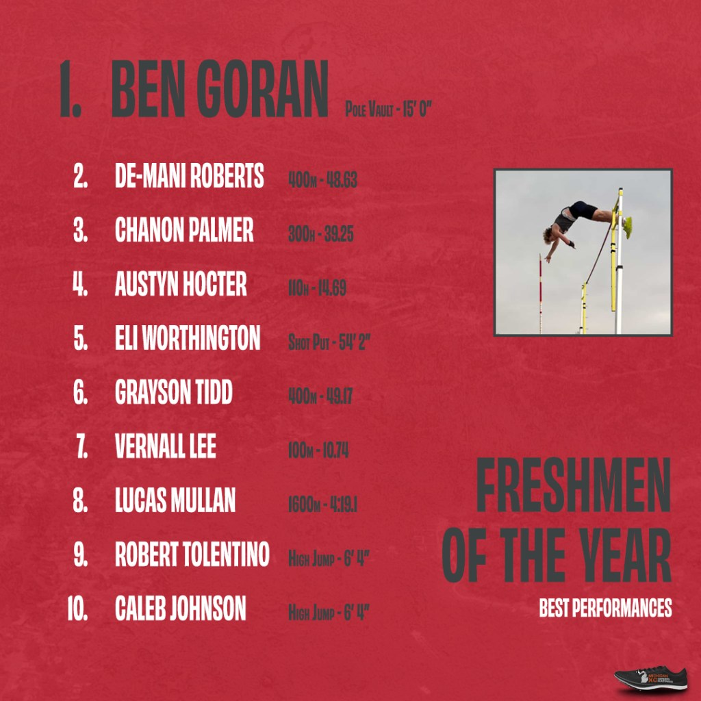 | Rank | Grade | Name | Event | Mark | Team | Points | US Freshmen |