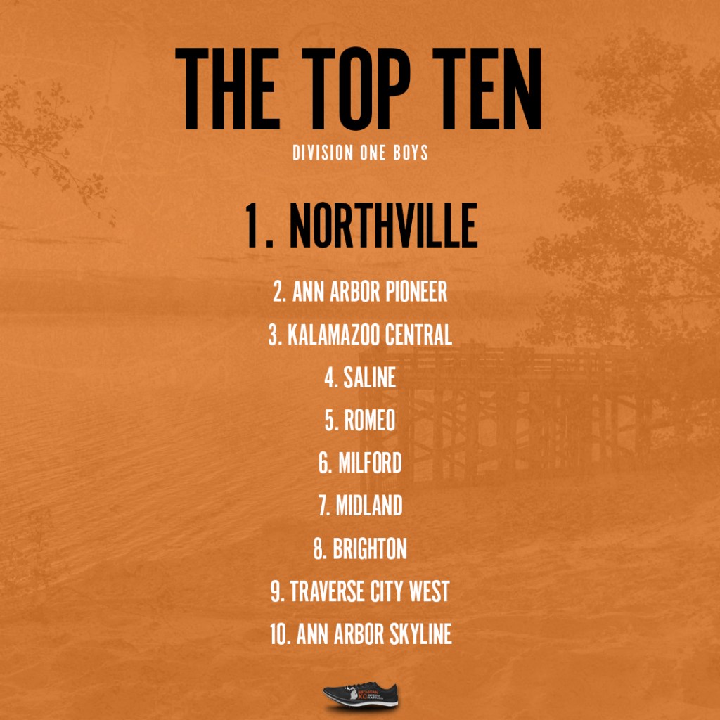 The Top Tens are just as they sound, the Top Ten teams from each division. This is scored like an XC meet, all 100+ teams from a division against one another. XC is so different than other sports in that a team’s strength varies with the size of the field they’re competing against. Thus, teams with a little more depth tend to be stronger on these statewide rankings.