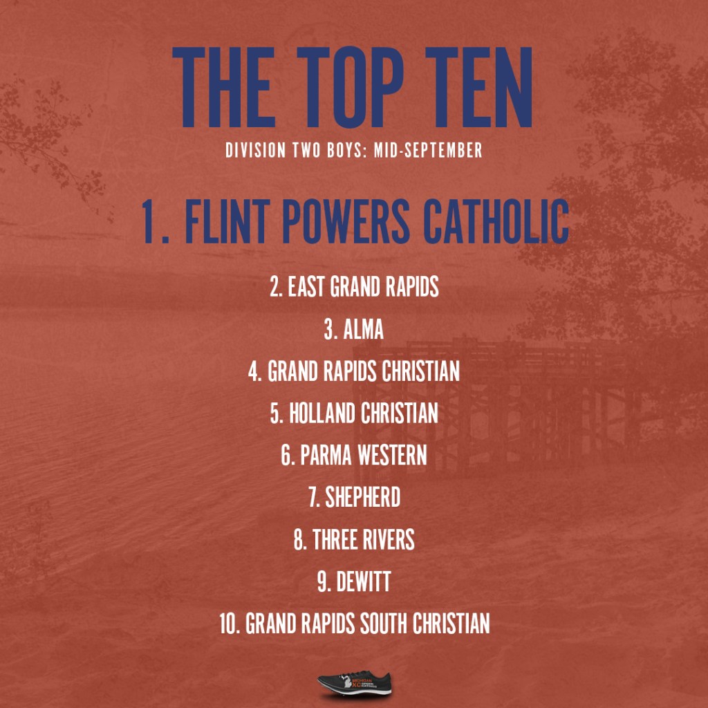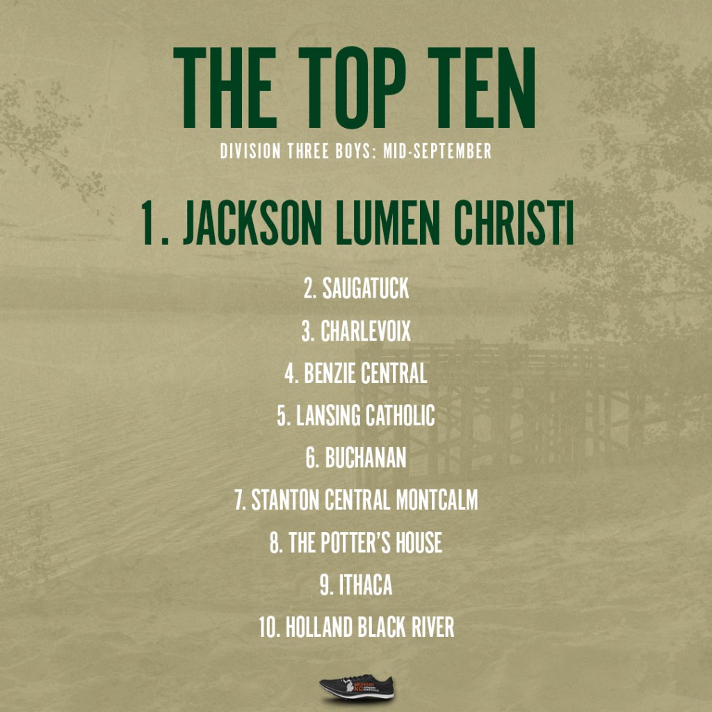 As you’ll see in other divisions, it appears to be a rest weekend for many in the state. Four of the top-10 teams are out of action, including our top squad of Maple City Glen Lake. But that provides opportunity for advancement, and the teams that are competing are finding their ways to fast courses. #2 Hillsdale Academy once again will be facing heightened competition at Jackson, #4 Mt. Pleasant Sacred Heart heading north to Cadillac, #5 Whitmore Lake coming to the East Side, and #3 Holland Calvary Christian bringing in autumn with a proper sunrise.