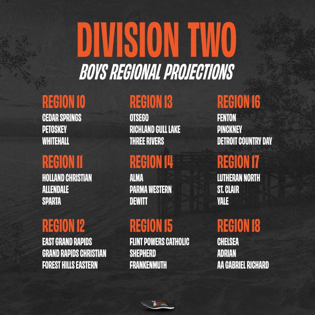 A tad more complexity for the girls, three teams in the running for two spots. Clare takes the trek over from mid-Michigan and also Division 3. They’re the ones on a roll, snapping a decades long JPC streak held by Shepherd, six Pioneers sub-21 on the quick Shepherd course.