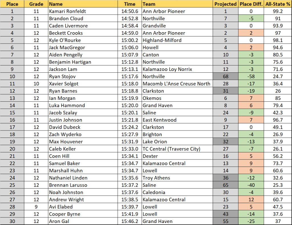Ryan Barnes, Clarkston – projected 31st with a 26% chance of All-State, placed 12th