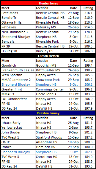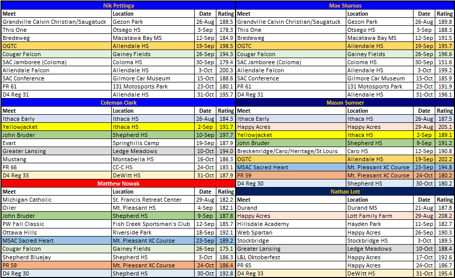 Fast forward to early November and Kurtis Bronz has made the necessary improvements to be there for Saugatuck. He’s made about a 0:30-0:45 jump in terms of his ratings and is consistently running in the high-18’s.