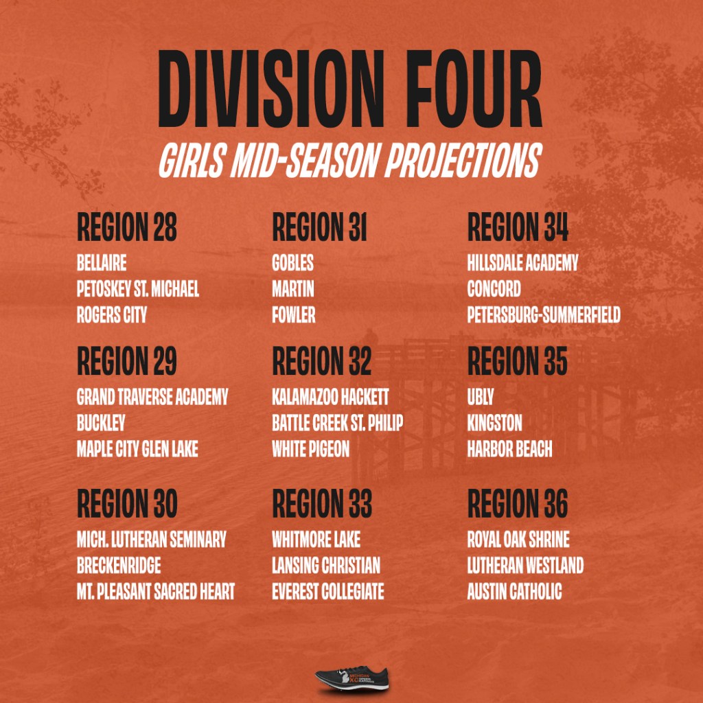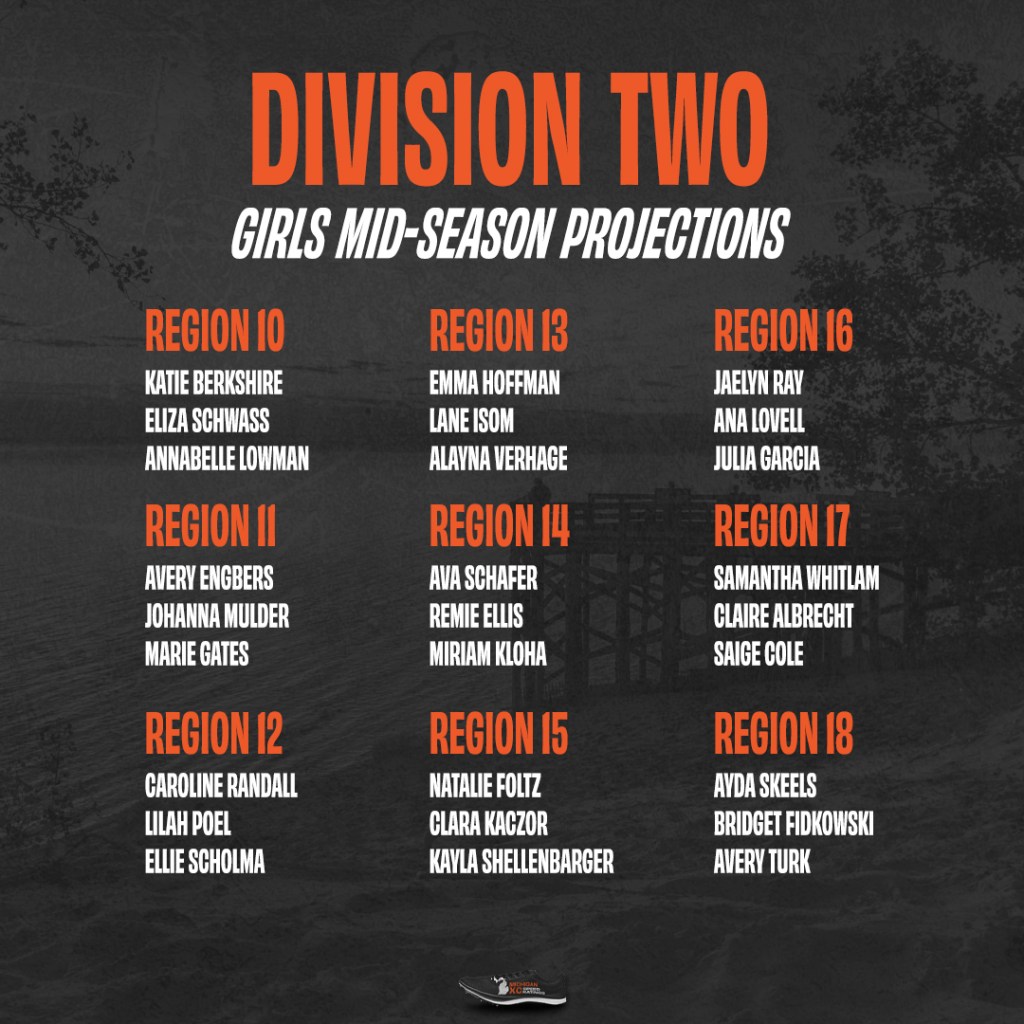There are 79 days of competition in Michigan’s cross country season. We’re at Day 40 right now. That’s about as halfway as you’re gonna get. As we’re halfway, we shoot past divisional rankings into mid-season regional projections.